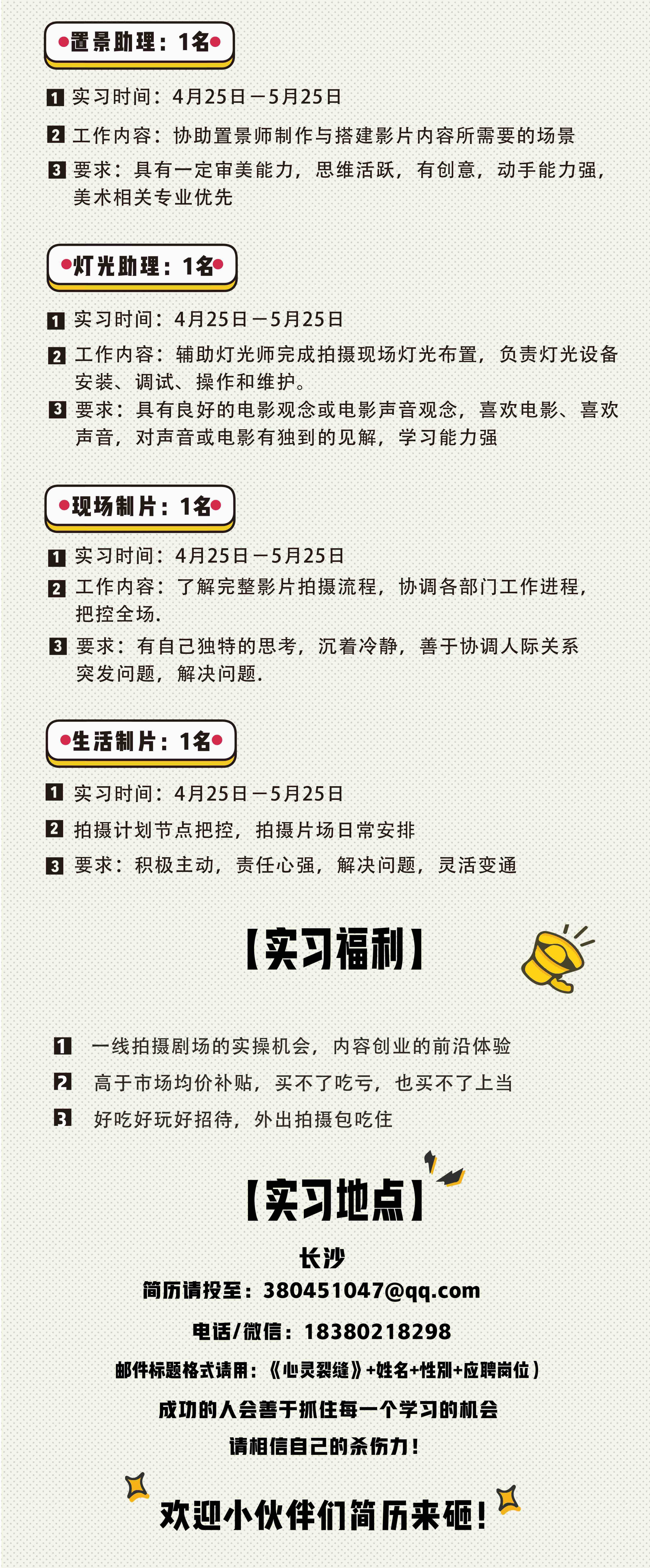【招聘】《心灵裂缝》剧组招人