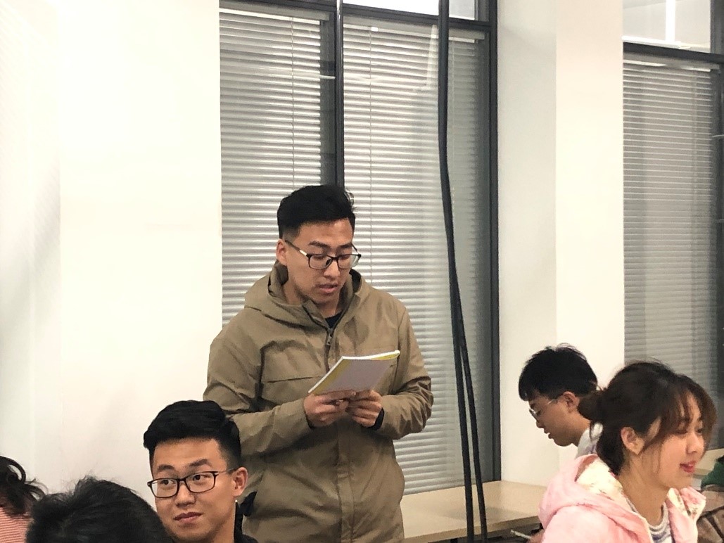 在讨论结束后,来自17级的赵昕宇同学首先进行了发言。他谈到,在政府工作报告中提出的“加快学历证书与职业技能证书互通衔接,提高办学质量,推进一流大学和一流学科建设,严把学术关”等教育政策令他印象最深刻。他认为作为新闻专业的学生,应扎根生活,扎实学习。所有的学术创新立足于已有的奠基性成就,但不是借鉴和抄袭,如此才是对知识的尊重和自我的提高。