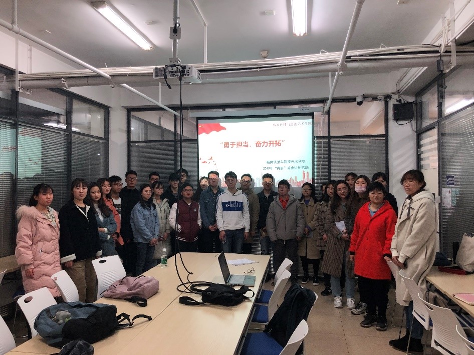 新闻传播与影视艺术学院2019年“两会”重点讨论活动在图书馆学习研讨空间举行。本次活动以“勇于担当,奋力开拓”为主题,旨在提高党员及推优分子的政治素养,进一步理解“两会”精神的内涵,增强自身的使命意识和责任意识。