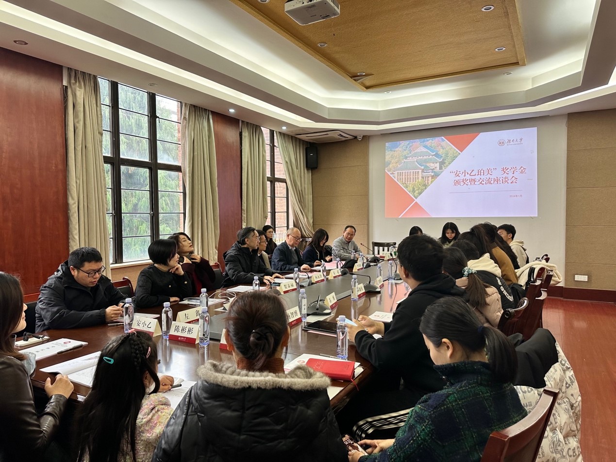 2024年1月5日下午14时30分,“安小乙珀美”奖学金颁奖暨交流座谈会在北楼307室举行。此次会议特别邀请到2000级新闻专业校友,浙江校友会副会长、杭州安小乙进出口有限公司总经理、浙江珀美文化传媒有限公司总经理安超先生及其家人陈彬彬、安小乙、安小棉,2000级新闻专业校友贺春禄重返校园,参加此次会议。成人av