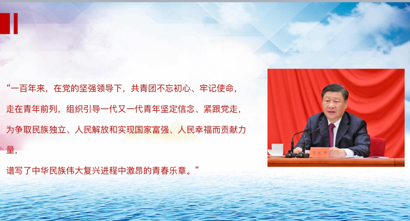 1、学习习近平总书记在中国人民大学考察调研的重要讲话精神,学习习近平总书记在庆祝中国共产主义青年团成立100周年大会上的重要讲话精神,体悟新时代青年的责任与担当。