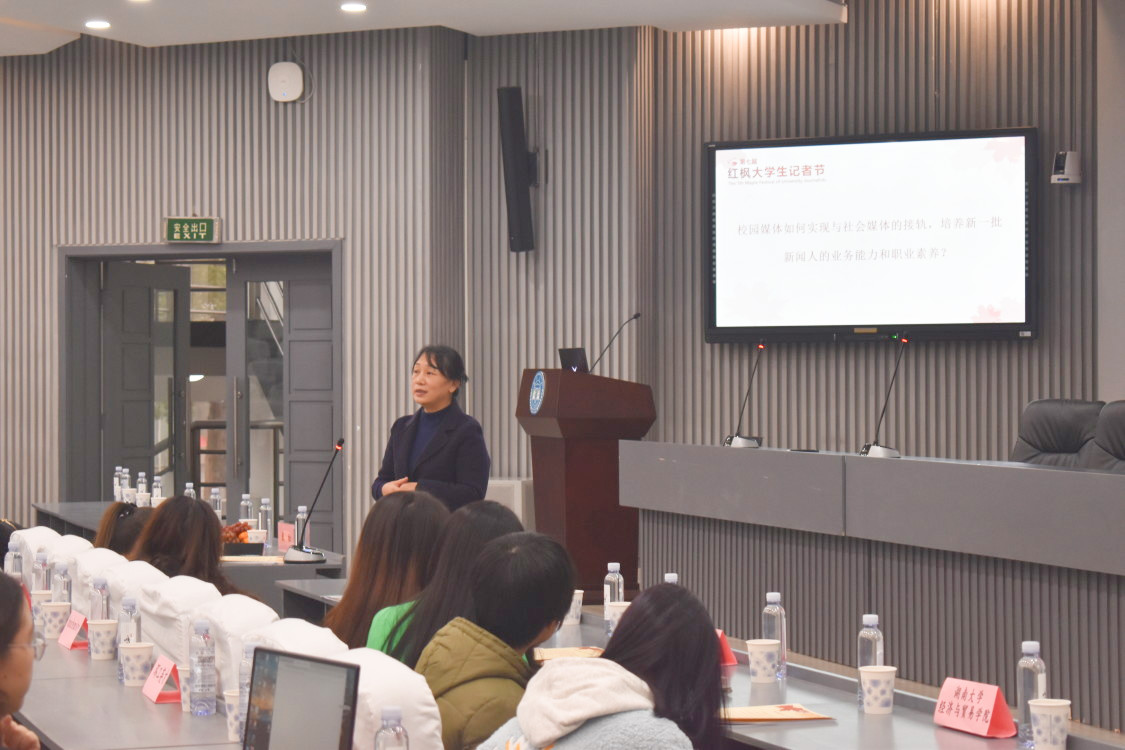 最后,三位指导老师对校园媒体代表们的发言进行了点评,对校园媒体的未来发展提出建议,并鼓励同学们肩负责任、满怀热情、积极实践,不断提高内容质量、拓宽传播渠道,提高校园媒体的影响力。
