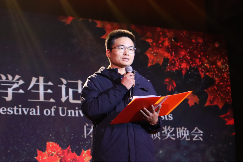 2009级硕士研究生辜鹏博在晚会现场分享了自己的抗疫经历,表达了身为一名记者的责任与使命:“新闻记者不仅是观察者、记录者,也是陪伴者”,动人的话语引发现场强烈共鸣。