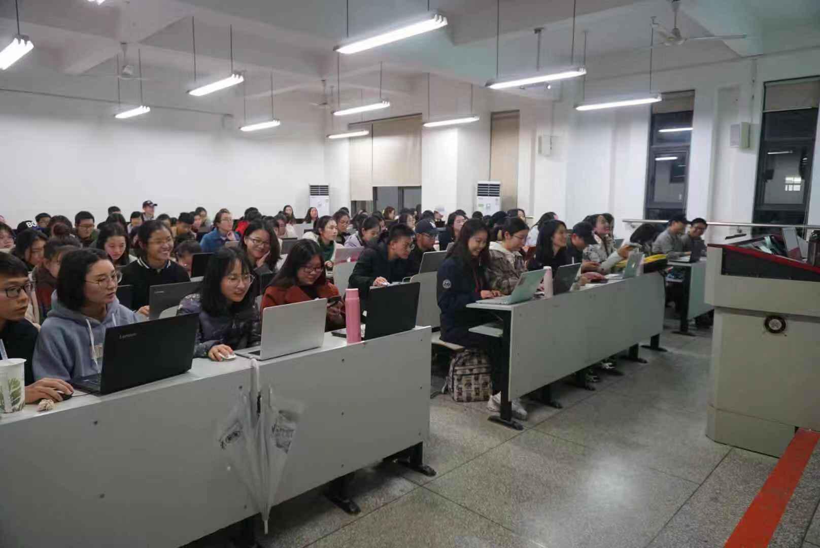 李昱佑又为同学们介绍并演示了PS基本工具以及相关操作,包括移动工具、选择工具、矩形选框工具等。为了加深同学们的理解,他带领大家一起完成了简单海报的制作。他先是详细讲解了海报制作的过程,随后针对同学们在应用PS过程中的遇到的问题进行解答,并给大家分享了一些实用性素材。 李昱佑说:“‘对比和重复’是平面排版中最经典的设计原则,但是太过也是不提倡的,其次也要考虑媒介对设计的影响。”培训最后,他通过设计实例向同学们展示了优秀的设计作品应该是什么样的。