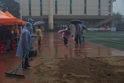 赖禹蓉表现出了极佳水平。经过几轮的激烈角逐,最终她以6.86米的成绩夺得了小组第六名的好成绩。当提及自己的成绩,赖同学说道:“ 我对自己的成绩还比较满意,因为自己之前也没跳过三级跳,训练也不是很充足,而且今天穿着雨衣活动比较受影响,不过不管怎么说取得了这样的成绩还是要感谢教练对自己的指导。”