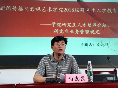 9月4日上午,新闻传播与影视艺术学院2018级研究生入学教育专题讲座在北楼217报告厅举行,主题为研究生人才培养与管理,由副院长向志强主讲,2018级全体研究生参加。