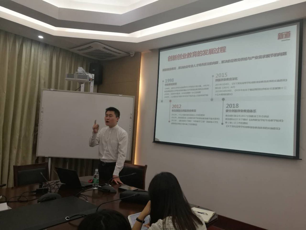 成忠老师详细讲解了我国创新创业教育的发展过程,特别强调了十九大后的我国的创新创业教育发展状况。他说:“目前,我国的创新创业教育正在从1.0迈向2.0,要完成这一转变,必须要使创新创业与思政教育、创新与创业、课堂教学与实践教学相结合,深化高等教育综合改革,激发大学生的创造力。”