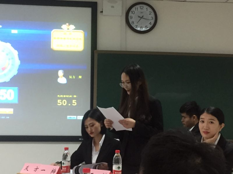 双方选手在立论、驳立论、攻辩等各个环节中思路清晰,引经据典,字字珠玑,使现场气氛迅速升温。在随后进行的自由辩论环节中,双方选手就辩题展开更深层次的辩论,个个妙语连珠、舌绽莲花的辩论一次次比赛推向高潮,观赛学生热情参与,现场掌声不断,互动环节也是不失精彩。