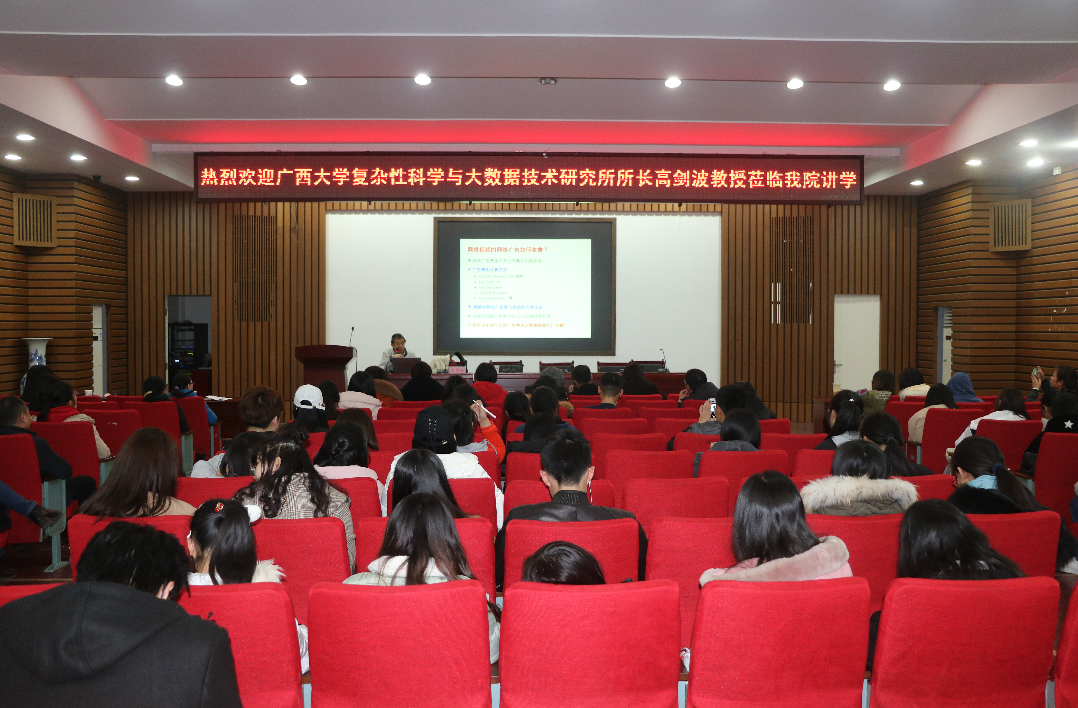 举行“新闻媒体大数据的计算”学术讲座,主讲专家为国际知名学者、广西大学复杂性科学与大数据技术研究所所长高剑波教授。