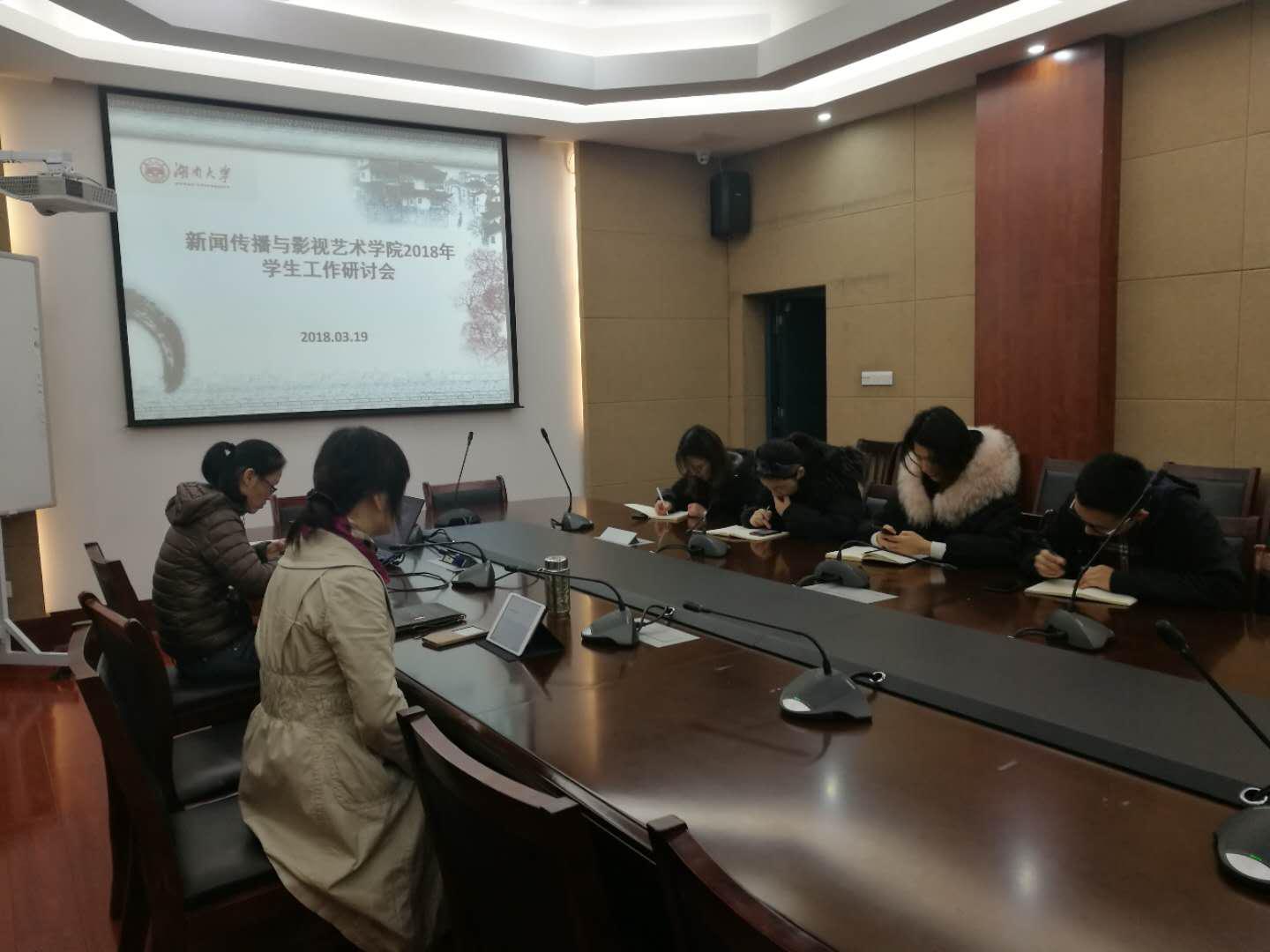 3月19日上午10:00, 新闻传播与影视艺术学院2018年学生工作研讨会在北楼307会议室举行。学院党委副书记程华、学院团委书记刘婵、15级辅导员刘佳、14级17级辅导员丁杨、研究生辅导员潘少光以及学院学生会主席周韩月、学院研究生会主席郭婧等学生代表参加了会议。