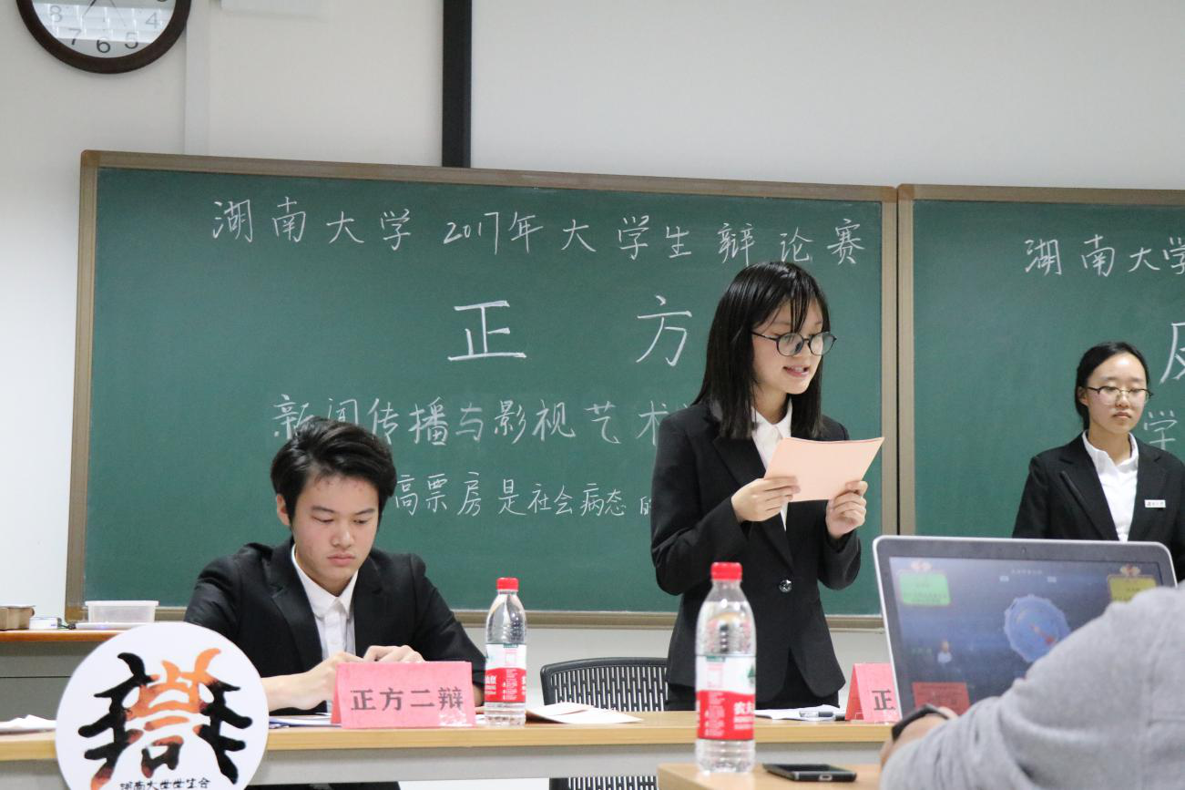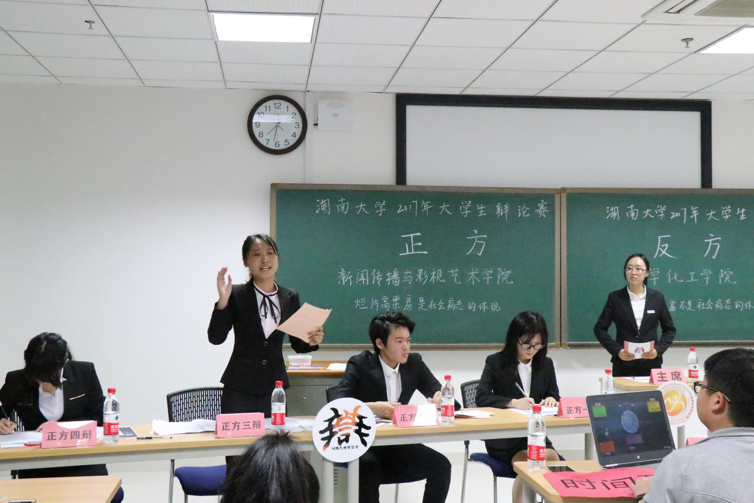 “华为杯”2017大学生辩论赛在研究生院楼进行,19个院的20支队伍齐聚一堂,共同在辩论赛中发声发亮。晚上7点,新闻传播与影视艺术学院对阵化学化工学院,最终新影院取得了本场比赛的胜利。