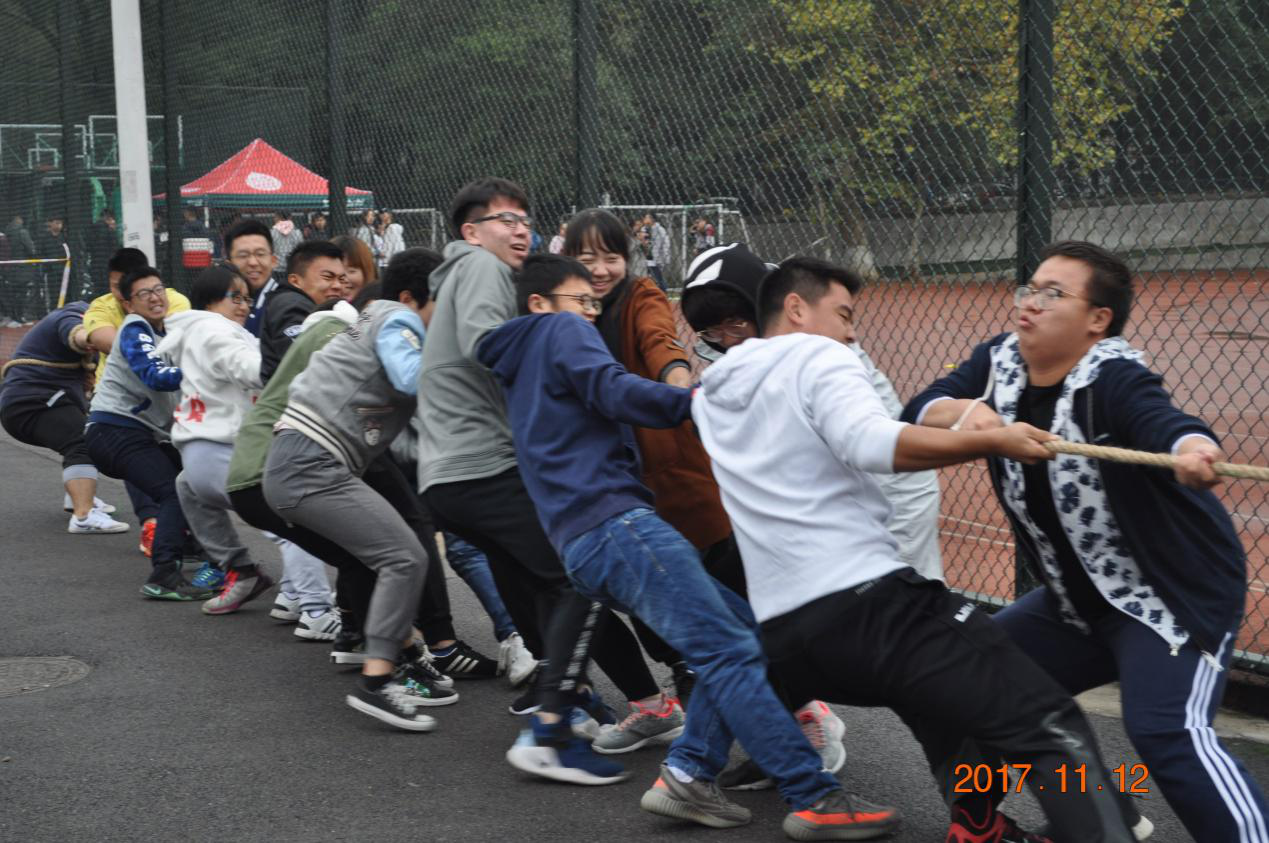拔河比赛,新影院、物电院和生物院对前三名发起了争夺。首先新影院对阵物电院,一开始双方发力,新影院占据了明显优势,顿时士气大增,以压倒性的优势取得了第一局的胜利。第二局开场,物电院率先发力,新影院不甘示弱。身在后方的两位重量级体特生咬牙用力,双方一度僵持,最后新影院一鼓作气拿下第二局。中场休息后,新影院再战生物院,但由于队员体力消耗过大以及缺乏统一的节奏最终惜败于生物院。新影院最终取得拔河比赛第二名的好成绩。
