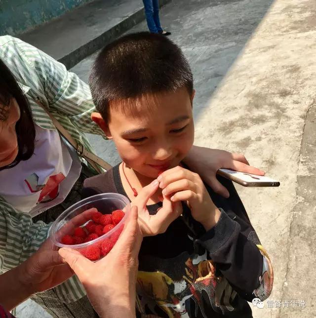 当我们准备离开学校的时候,一个小男孩急冲冲地从校门口跑过来“姐姐,这是我中午在山上摘的树莓,请你们吃!”小男孩非常兴奋地将手中的塑料碗递给我们。他简单表达谢意的方式让我们深受感动,也坚定了我们做公益的决心。