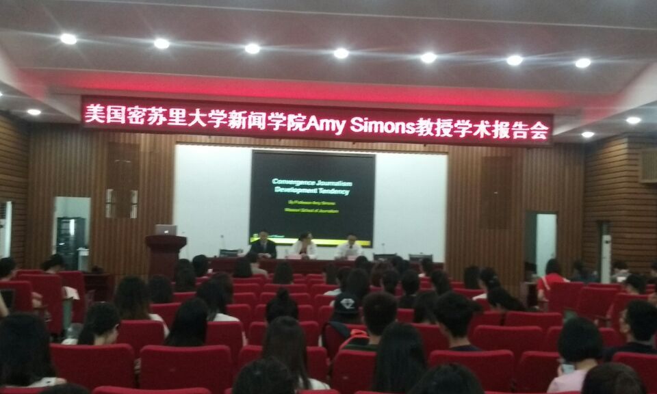 媒介融合未来的趋势将会如何?新闻学未来的发展将有哪些变化?这是很多新闻传播学专业的学生关注的话题。13日上午,密苏里大学新闻学院媒介融合系副教授艾米·西蒙斯(Amy Simons)莅临北楼217,以“媒介融合新闻学的发展趋势”为主题举办了一场别开生面的学术讲座,讲座由新闻传播与影视艺术学院院长彭祝斌教授主持。