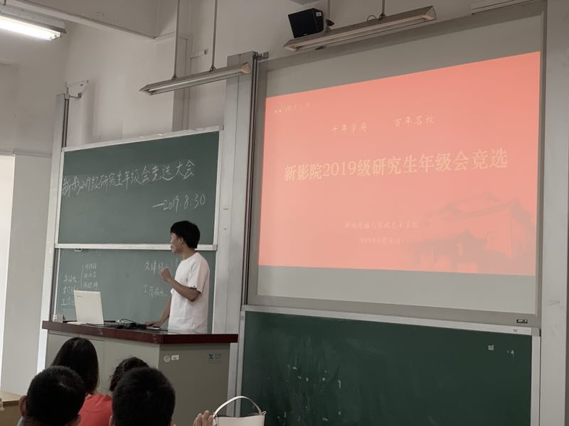 8月30日,新闻传播与影视艺术学院于北校区二教205举行2019级研究生年级会竞选大会。竞选大会由2018级年级会组织,新影学院2019级全体研究生参加。